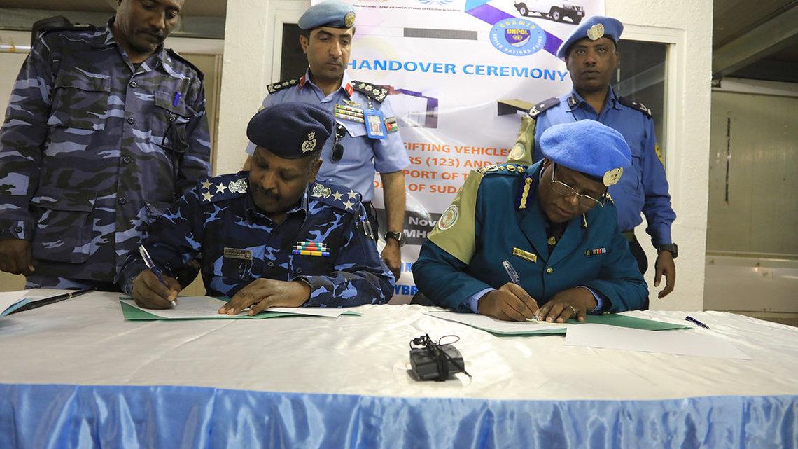 كجزء من جهود اليوناميد المتواصلة لتحسين قدرات الشرطة المحلية ومؤسسات إنفاذ القانون في دارفور، سلمت البعثة في 13 نوفمبر 2018، 39 سيارة و123 حاوية بحرية وأثاث للشرطة السودانية. ويأتي التسليم تماشياً مع أنشطة البعثة المنصوص عليها في التفويض والخاصة بحماية المدنيين وتعزيز القدرات المؤسسية للشرطة السودانية في دارفور على النحو الوارد في قرار مجلس الأمن التابع للأمم المتحدة رقم 2429 (2018).