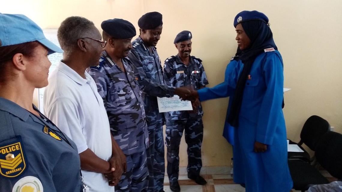 وتنظم شرطة اليوناميد بالشراكة مع فريق الأمم المتحدة القطري في السودان ورش عمل لتدريب المدربين لقوات الشرطة السودانية لضمان استدامة نقل المعارف والمهارات لقوات الشرطة السودانية كجزء من تنفيذ الخطة الانتقالية للبعثة وتيسير التسليم السلس للمسؤوليات الشرطية للشرطة المحلية بنهاية شهر يونيو 2020.