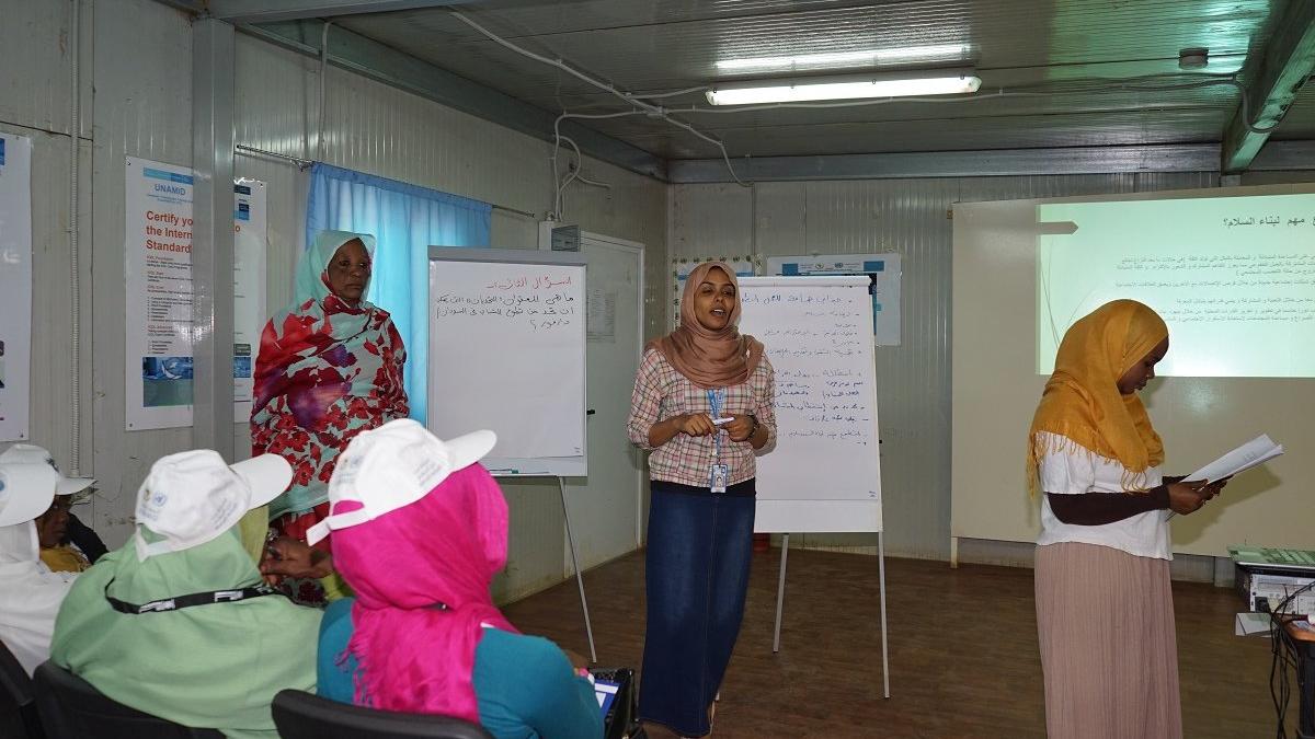 تركز البعثة المختلطة للاتحاد الأفريقي والأمم المتحدة في دارفور على حماية المدنيين - ولا سيما الفئات الضعيفة مثل النازحين الذين لا يزالون غير قادرين على العودة إلى ديارهم بسبب الصراع. وتستجيب البعثة ومتطوعو الأمم المتحدة للبيئة المتغيرة لحفظ السلام عن طريق زيادة التركيز على أنشطة تحقيق الاستقرار التي تحافظ على المكاسب المحققة. إنّه لتفويض معقد يتكيّف مع الظروف المتطورة على أمل تحقيق انتقال مستدام نحو السلام في دارفور.