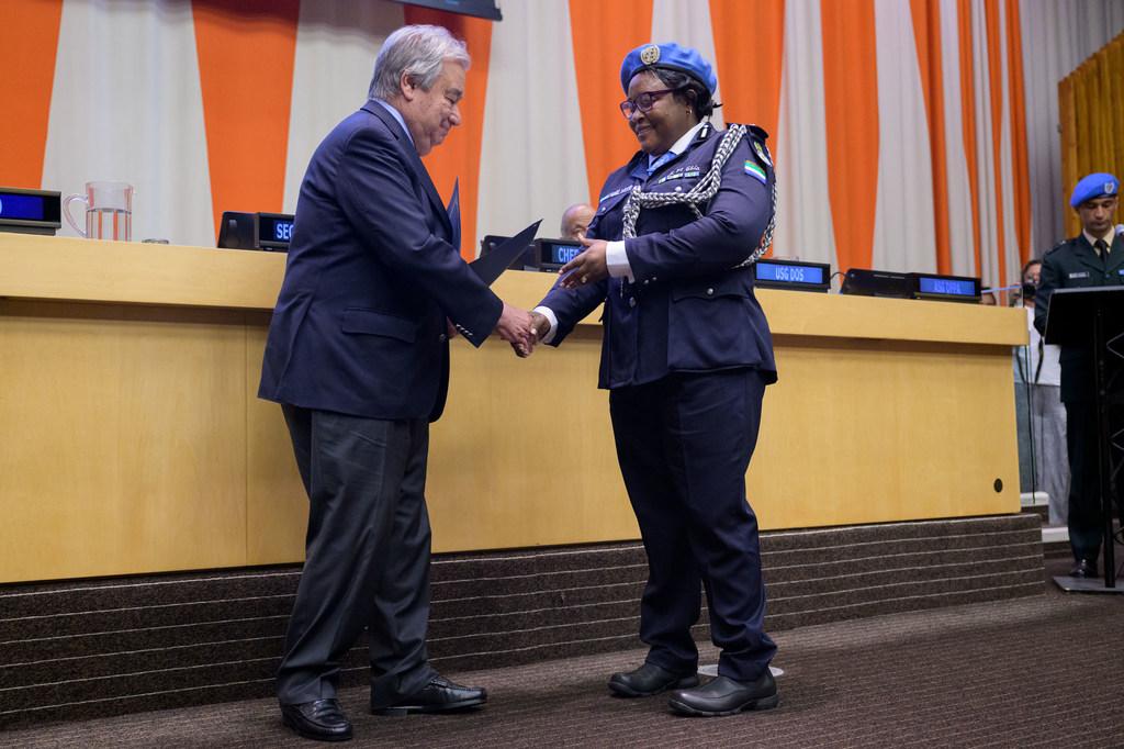 The Secretary-General commended Sergeant Sharon Sim for her role in helping to better understand the concerns of women and girls and formulate possible solutions, which played a vital role in enabling the peacekeeping force to respond to the needs of the local community, as well as for her extensive community outreach on gender-based violence and ending child marriage.
