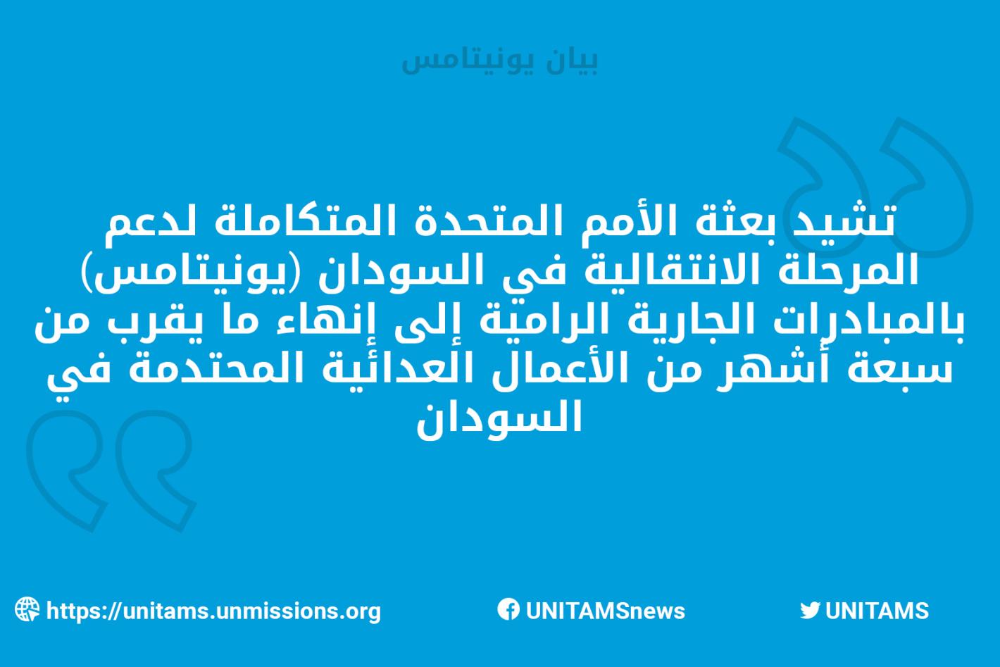 03 حزيران 2025UNITAMSبيان صادر عن نائبة الممثل الخاص للأمين العام للسودان والموظفة المسؤولة عن يونيتامس والمنسقة المقيمة ومنسقة الشؤون الإنسانية، بشأن حماية المدنيين في دارفور