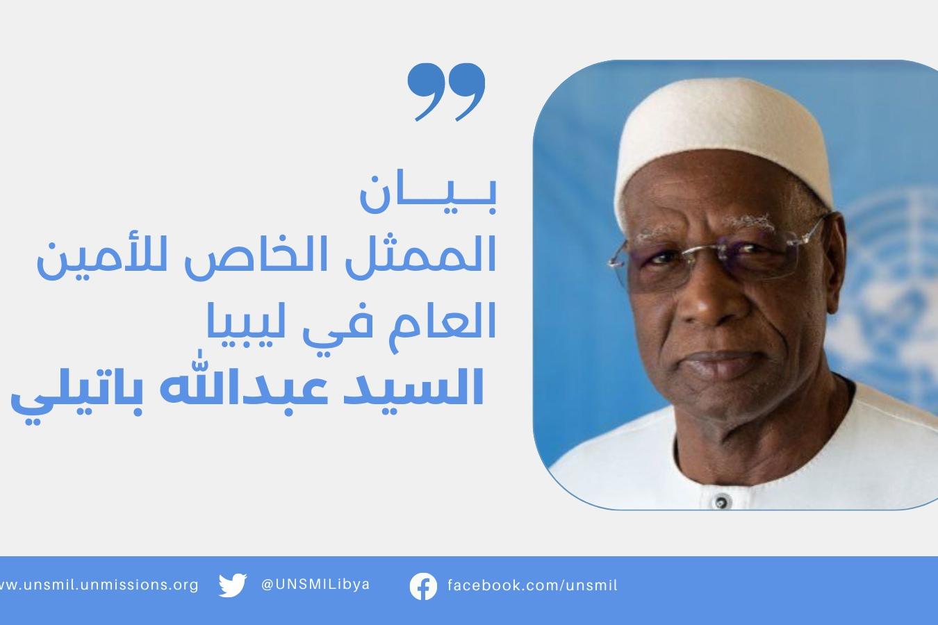 10 تموز 2023UNSMILبيان صادر عن الممثل الخاص للأمين العام في ليبيا، السيد عبد الله باتيلي، حول تيسير عملية سياسية شاملة
