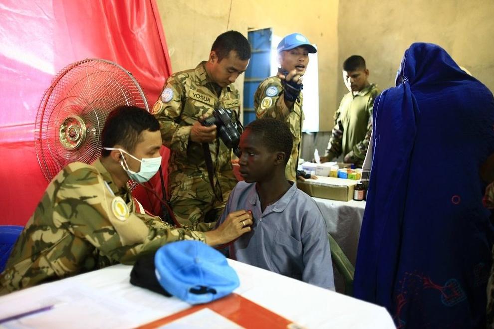 تصوير ام الحسن خميس، اليوناميد. نظَّمت اليوناميد في الفترة من 23 إلى 24 سبتمبر2018 عيادة طبية مجانية في معسكر دورتي للنازحين في غرب دارفور. نُظِّم الحدث في إطار أنشطة مكتب التنسيق المدني العسكري باليوناميد من قبل حفظة السلام…