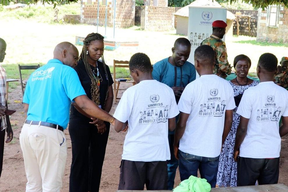Three children stand under mango trees with a few belongings as they are released from South Sudanese armed forces and begin a new life. Photo: Denis Louro/UNMISS. WESTERN EQUATORIA - On a peaceful morning in Yambio, three…