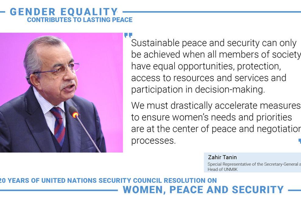 On the occasion of the 20th anniversary of United Nations Security Council resolution 1325 (2000) on Women, Peace and Security, the Special Representative of the Secretary-General (SRSG) and Head of UNMIK, Zahir Tanin…