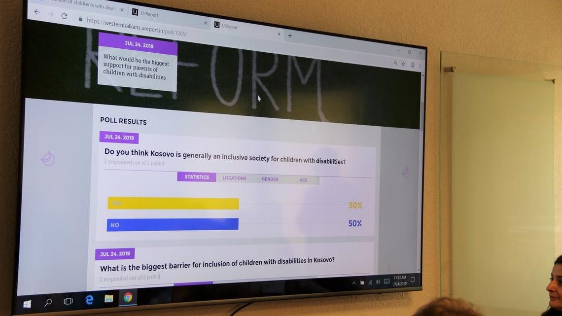 SRSG Tanin was invited to launch a UNICEF poll of more than 5,000 young people from Kosovo on the issue of integration of children with disabilities. UNICEF’s social platform “U-Report”, available via Facebook and Viber, permits UNICEF to sample young people’s opinions on a select range of topics.The results of the poll, in which some 1,085 youngsters participated, are telling. 59% of the respondents did not consider society in Kosovo as inclusive for children with disabilities: