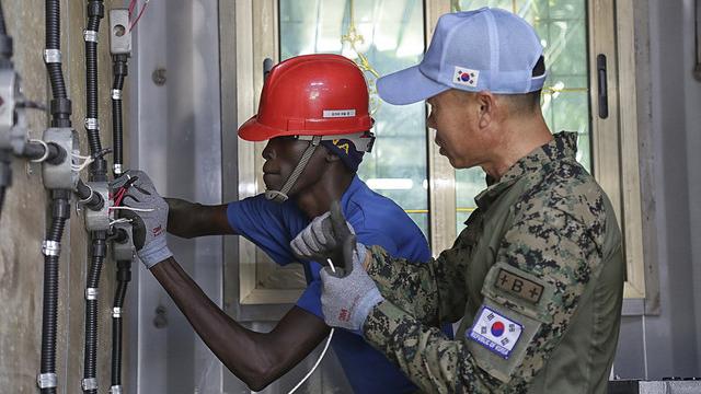 Abraham Thon, a young South Sudanese man, puts his electrical engineering skills to use at the Hanbit Vocational Training Centre, run by Korean peacekeepers in Bor.