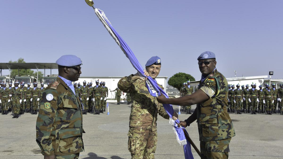 Sector West Commander Brigadier General Bruno Pisciotta, who was the Guest of Honour, symbolically passed the UN flag from the outgoing to the incoming commander.