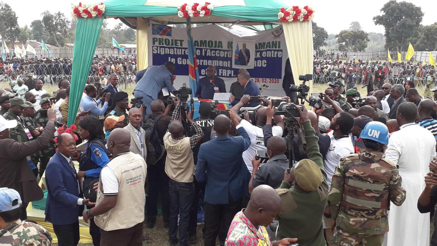 The Congolese Government signed on Friday, February 28 in Gety, roughly 60 km from Bunia, the provincial capital of Ituri, a peace agreement with the ‘’Force de Resistance Patriotique de l’Ituri’’ (Patriotic Resistance Force of Ituri (FRPI), the last largest armed group operating in this eastern province of the Democratic Republic of Congo (DRC). The long-awaited agreement by the local populations is intended to restore peace, security and stabilization in this territory located in the east of the country.