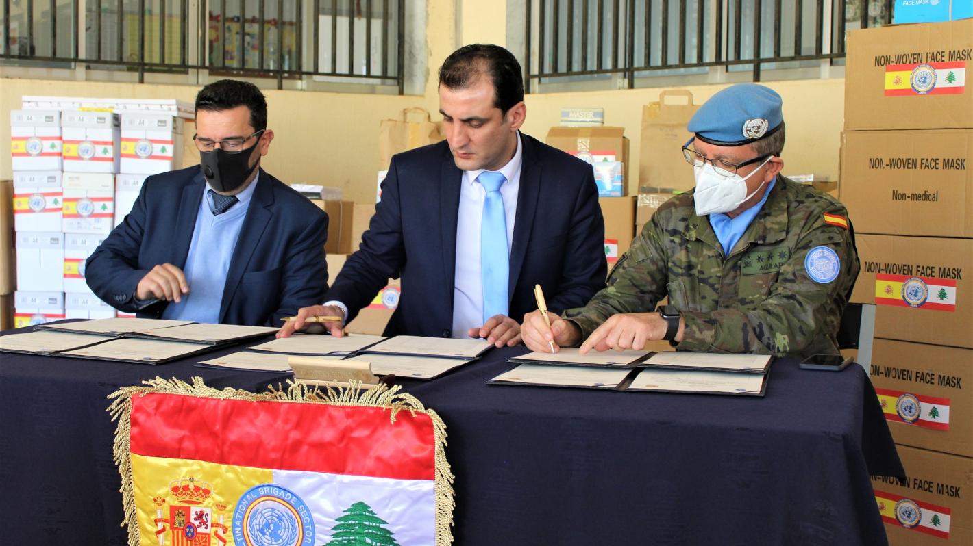 The south-eastern Lebanese village of Habbarieh last week received several materials to limit the spread of COVID-19 virus, as well as school supplies, from UNIFIL’s Spanish Contingent.