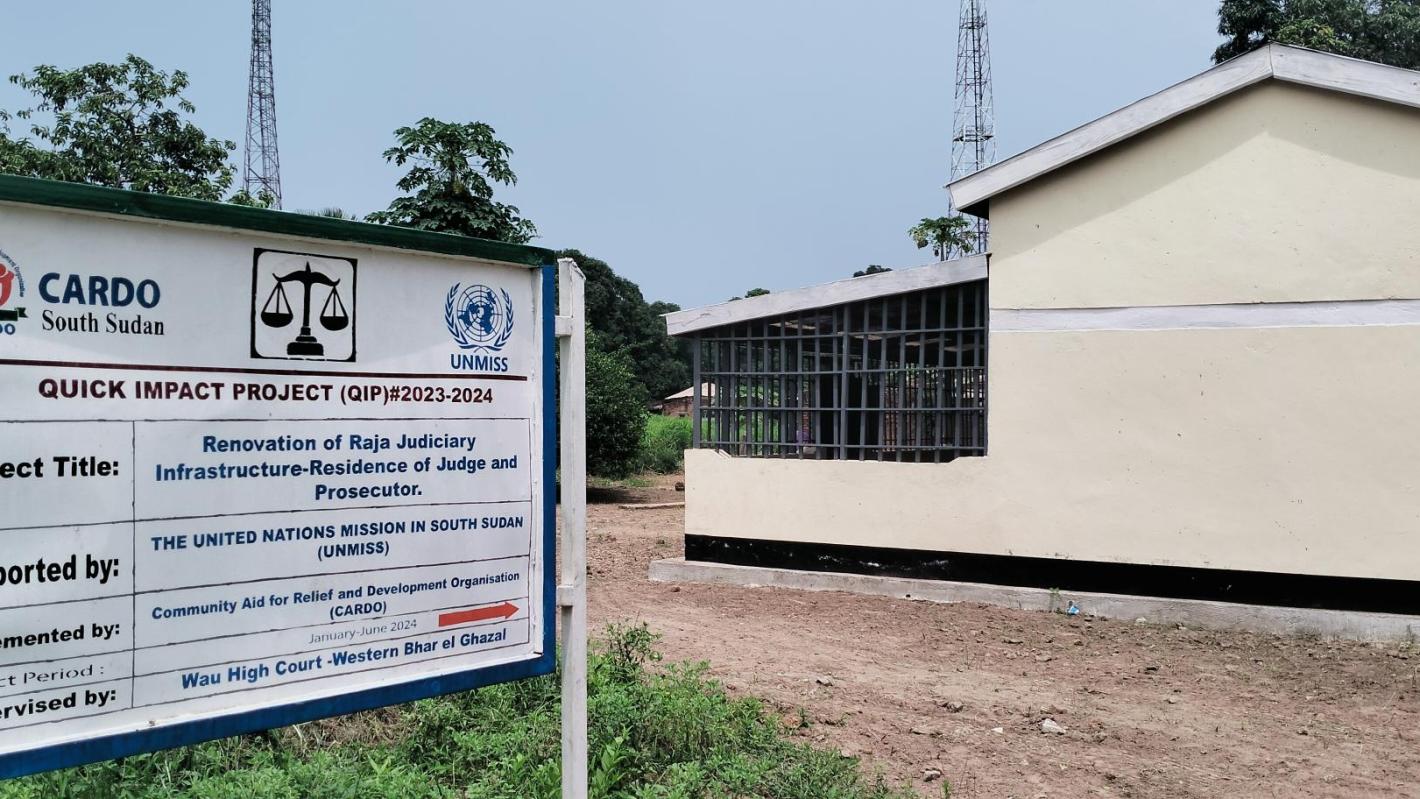 WESTERN BAHR-EL-GHAZAL – For a country’s judicial system to function properly, its various institutions need suitable infrastructure to perform their duties. The recent refurbishment of the Raja County Court, funded by the United Nations Mission in South Sudan (UNMISS), was undertaken for exactly this reason.“UNMISS is assisting South Sudan in strengthening the rule of law and addressing impunity both by renovating or replacing inadequate physical structures and by building institutional capacity. Everyone needs access to justice, not least women and children,” commented Sam Muhumure, Head of the peacekeeping mission’s Field Office in Wau.Implemented by the Community Aid for Relief and Development Organization, the 50,000 USD refurbishment project covered included the court’s main hall, an office and residence for the judge, separate rooms for prosecutors and other staff, three cells, and other essential facilities.“Now that it in is good conditions, this court must step up and ensure that justice is served in this part of our state,” said Zakaria Joseph Garang, Acting Governor of Western Bahr El Ghazal State, who also expressed his concerns about a recent surge of rape cases.Considering that Raja is situated some 300 kilometres away from the court in the state capital Wau, survivors of sexual violence and other violent crimes are indeed likely to find it less challenging to have their grievances heard and addressed. However, one key piece of the justice puzzle is still missing.“Now that the court is operational, it's time to appoint a permanent judge in the county, because we haven’t had one for eight years,” said County Commissioner Addison Arkangelo, who praised UNMISS for its assistance in periodically deploying a mobile court to deal with a backlog of pending cases.