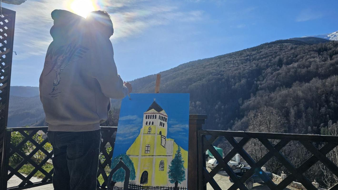 This project is a part of UNMIK’s Confidence Building initiatives, involving young people from Kosovo Albanian, Serb, and Roma communities. The Ethnologic Museum, the Bajrakli-Qarshi Mosque, and the Serbian Orthodox Church's Visoki Dečani Monastery served as the backdrop for a two-day multiethnic art colony in the picturesque Rugova Valley.