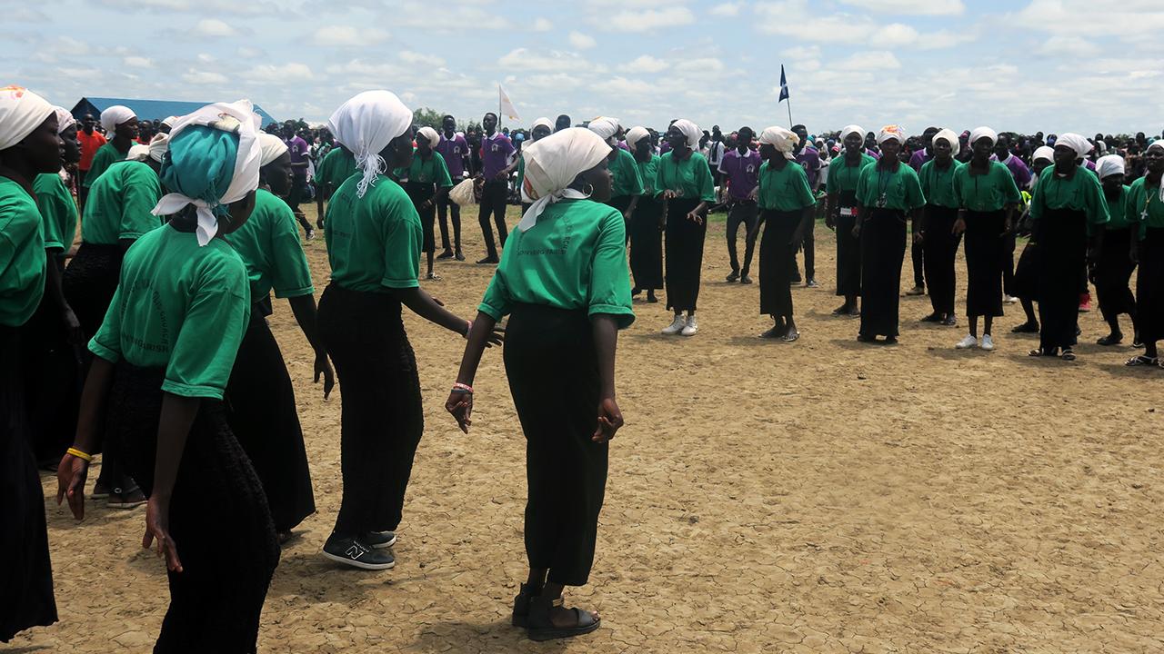 “We are called children of God and this is a time for peace and forgiveness,” Reverend Manyang John told the audience of more than five thousand people who filled a football pitch inside the UN protection site in Bentiu.