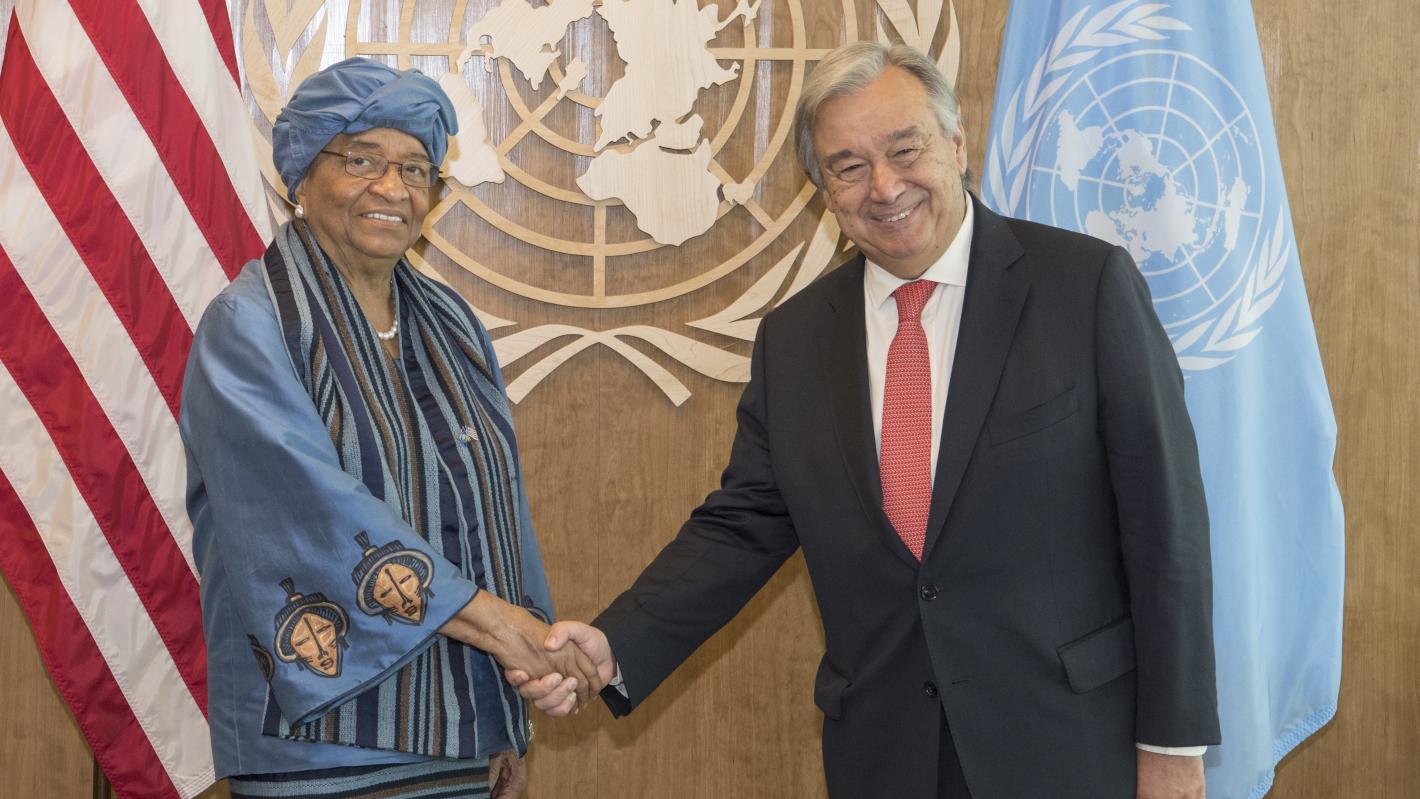 (ARCHIVES)Secretary-General António Guterres (right) meets with Ellen Johnson Sirleaf, President of the Republic of Liberia. © UN Photo/Eskinder Debebe 21 September 2017
