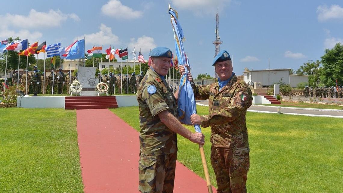 In a ceremony attended by high-level dignitaries, Major General Stefano Del Col (Italy) assumed charge as Head Of Mission and Force Commander of UNIFIL from Major General Michel Beary (Ireland). Major General Beary reviewed a UNIFIL Honour Guard and laid a wreath in memory of the 313 peacekeepers who have lost their lives in the service of peace since 1978. He later signed the Transfer of Authority document and handed over the UN Flag to Major General Stefano Del Col. In his farewell speech to mark the end of his term, Major General Beary especially thanked the Government of Lebanon, the Lebanese Armed Forces as well as religious, civil and community leaders in the south of Lebanon and the communities themselves in helping to further peace. “Today I will not say ‘farewell’, but rather ‘until we meet again’ – it is my hope that I will return at some time in the future to see the fruits of our labours here, peace and prosperity for the Lebanese people,” Major General Beary said. “I have watched with admiration as the LAF have steadily improved their capability, demonstrating their capacity to defend the sovereign borders of Lebanon and to conduct operations here in the South with UNIFIL.” On assuming charge as Head of Mission and Force Commander, Major General Del Col said: “I will continue to lead UNIFIL along the path towards the implementation of our mandate under Security Council Resolution 1701 and associated UN resolutions.” Major General Del Col also spoke of his previous two tours of duty with UNIFIL as a Battalion Commander in 2008, and as the Commander of Sector West and Italian Contingent Commander in 2014-2015. “For me this is like coming back home. I hope that we will serve this mission in peace,” he told the invited guests in Arabic before switching back to English. “I will be looking to you, the leadership of Lebanon and in particular here in the south, as key and committed partners in this endeavour in the spirit of true partnership,” said Major General Del Col. “It is important for me to hear your concerns and also your suggestions on the best way forward, because we must walk together the path to peace,” he added. ”I am looking forward to working closely with all of the Lebanese security agencies – our strategic partners the Lebanese Armed Forces, as well as General Security and the Internal Security Forces. Along with civilian agencies, working together we can secure the future of Lebanon and the Lebanese people.” The hand-over ceremony at UNIFIL Headquarters in Naqoura was attended by the Lebanese Minister Nicolas Tueny representing both the Lebanese President and the Prime Minister, Member of Parliament, Ali Bazzi, representing the Parliament Speaker, the Italian Minister of Defence Elisabetta Trenta, Lebanese Armed Forces Commander General Joseph Aoun, the Italian Chief of Defence, General Claudio Graziano, representative of the Lebanese Minister of Foreign Affairs, Jihan Asaker, representative of the Lebanese Minister of Interior Affairs, Mansour Daou, Deputy Chief of Staff for Operations of Ireland, Major General Kieran Brennan, senior officers of the Lebanese Armed Forces, Internal Security Forces, General Security and State Security, religious leaders, regional and local government officials, ambassadors and senior UN officials, including UNTSO Head of Mission and Chief of Staff Major General Kristin Lund and UNDOF Head of Mission and Force Commander Major General Vib-Sanziri Major General Del Col has had a long and distinguished career in the Italian Army. Since 2015, Major General Del Col has been the Senior Deputy Chief of the Cabinet Office of the Minister of Defence. Currently, UNIFIL comprises almost 10,500 military personnel from 42 countries, including the Maritime Task Force with six ships, the only naval force in peacekeeping operations - and some 800 civilian national and international staff. The Mission maintains an intensive level of some 13,500 operational activities monthly, by day and night, in the area of operations. Major General Michael Beary Speech - Major General Stefano Del Col Speech- Home