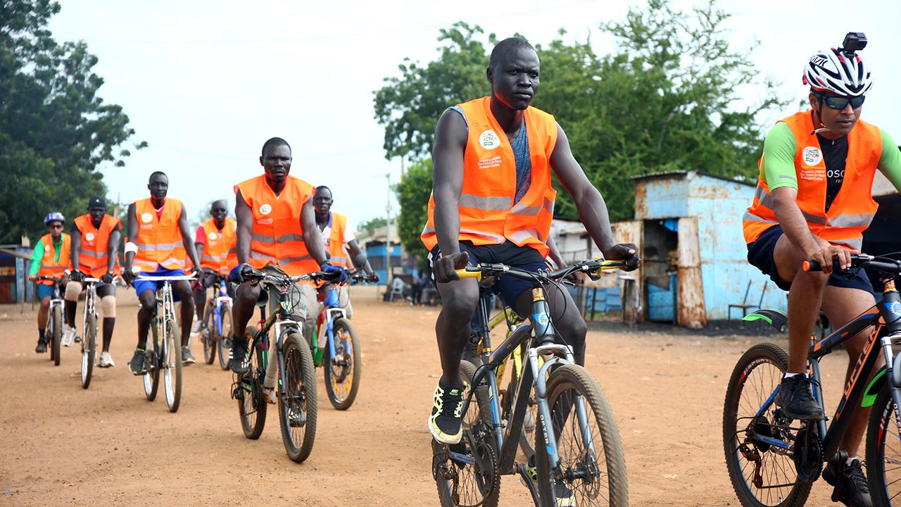 Malakal’s finest cyclists have taken to the streets in the first of many “rides for peace” aimed at encouraging climate action in the world’s youngest country. Led by ultra-cyclist and peacekeeper Lieutenant Colonel Srinivas G, they rode from the United Nations protection site to the Mayor’s office in town.