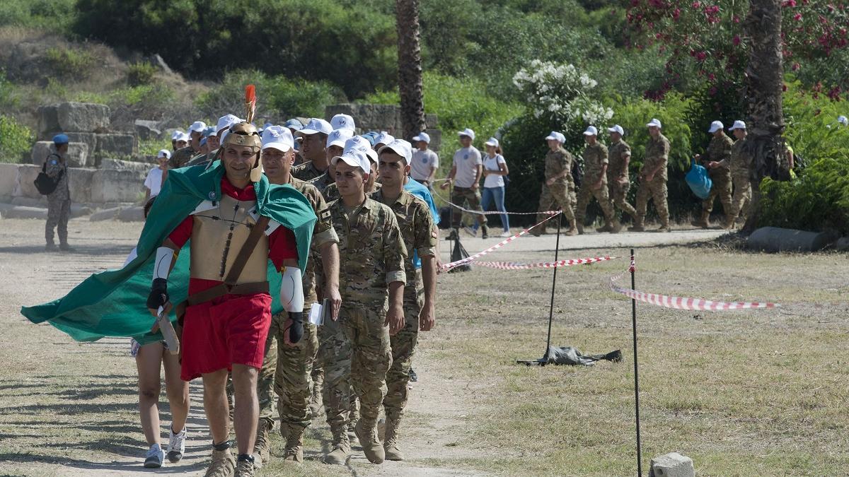 Dressed as centurions, UNIFIL French peacekeepers lead the opening of the third UNIFIL Military Olympiad.