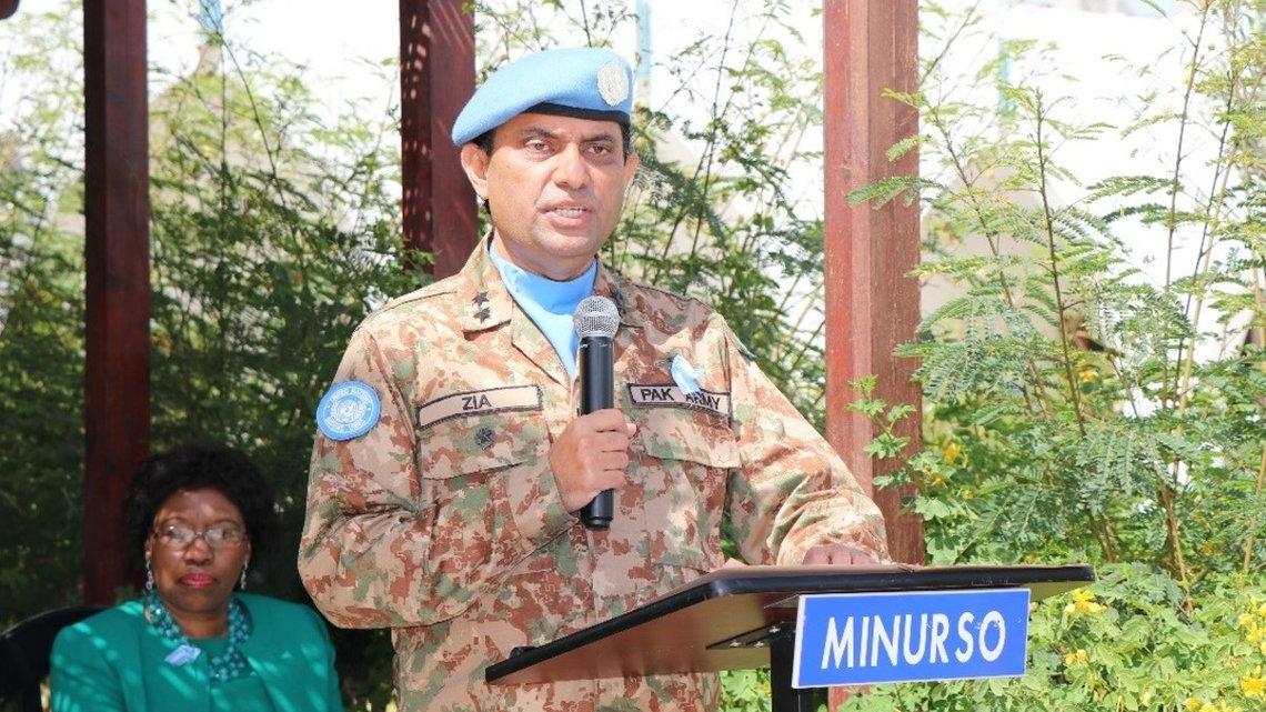 On 29 May 2019, MINURSO celebrated the International of UN Peacekeepers. A ceremony, chaired by the OiC Head of MINURSO, Force Commander Major-General Zia-Ur-Rehman toke place in the parade ground of the Mission HQ, in Laayoune (Western Sahara). The Major-General Zia-Ur-Rheman, at the presence of the Mission leadership, read the message of the UN Secretary-General for the International Day of UN Peacekeepers and addressed to MINURSO personnel gathered for the ceremony, recalling the values and sacrifices of whom served and lost their life for the noble cause of peace. After one minute of silence in the memory of the all fallen, the Major-General Zia-Ur-Rehman, accompanied by the Mission Chief of Staff, Mr. Alexander Ivanko, deposed a flower wreath at the monument of the MINURSO fallen. Later, the OiC Head of MINURSO, accompanied by the Mission Chief of Staff awarded Military Observers and other uniformed personnel with the UN Medal for their service. In this occasion all MINURSO personnel had a ribbon with the UN colorus in adeherence to the campaign ‘Thank you Peacekeepers’.