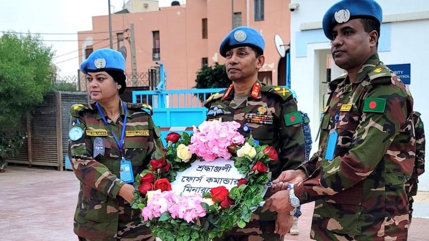 On 21 February, MINURSO Acting Force Commander, Major General Chowdhury Md Main Ullah (Bangladesh), alongside members of Bangladeshi Medical Unit presided over a ceremony in MINURSO HQ commemorating the International Mother Language Day. 21 February 1952 recalls the day when students at the University of Dhaka, the capital and largest city of the current Bangladesh launched a nationwide campaign to promote the speaking of Bengali in the run up to the creation of Bangladesh Nation in 1971. In recognition of the Bengali people’s struggle for their language and culture, UNESCO decided in 1999 that “21 February” would be observed worldwide as International Mother Language Day. The “Mother Language” is a melting pot of a particular culture with all its constituents and its preservation implies the protection of values, philosophies, cultural features, traditions, expressions, songs, dances, and other rituals.