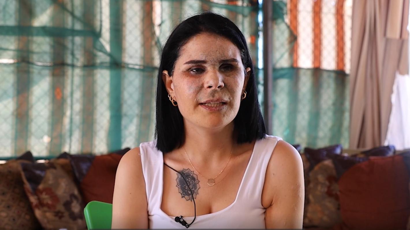 “They took me to Jabal Amel hospital,” she says. “There they gave me first aid, then I was transferred to the American University of Beirut Medical Center. I stayed there for a month where I went through medical interventions; almost every two days. I had wounds in my legs, my right hand was amputated, and I lost both eyes.”