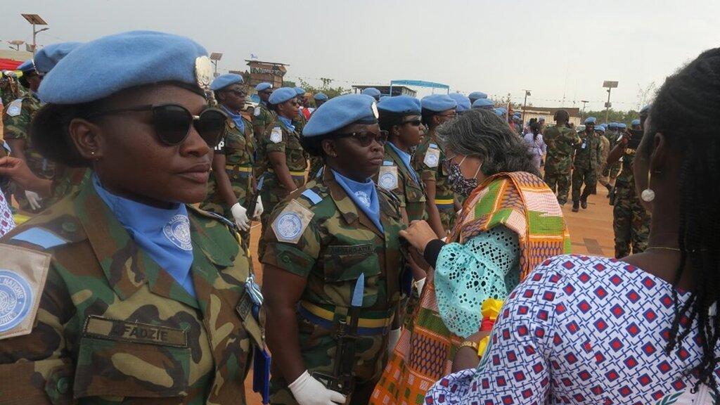 Female troops are key to the peacekeeping efforts of Ghana's contingent in Unity State. They, and their male colleagues, were recently awarded medals for their great performance. Photos: Roseline Nzelle Nkwelle/UNMISS
