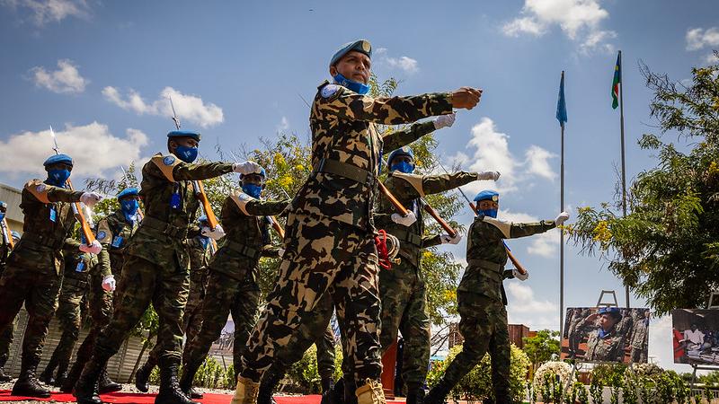 More than 19,000 peacekeepers work hard to deter violence and protect civilians across South Sudan, helping the world's newest country transition from war to peace. Today, the Secretary-General's Special Representative and Head of UNMISS, Nicholas Haysom, honoured them for their service and sacrifice, especially during the time of COVID-19 at a simple but meaningful ceremony at the mission's headquarters in Juba. Photo by Gregorio Cunha/UNMISS.