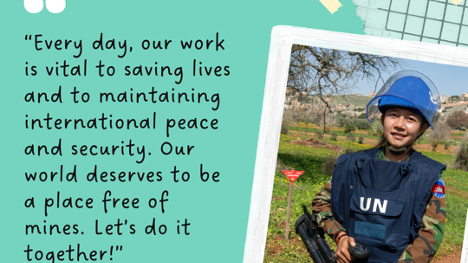 “At 21 years old, I am one of the youngest deminers trained by the UN Mine Action Service (UNMAS). I come from a country (Cambodia) that experienced a civil war. It caused so much pain and suffering that destroyed everything, even our homes, families, and schools. In my lifetime, I have met so many victims who lost limbs, and lost family members… I needed to do something about it.