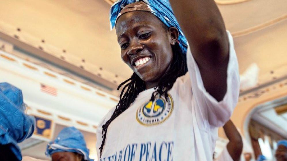 A Liberian Women’s Peace Group member performs during celebrations for the 10th Anniversary of the peace agreement at the Centennial Pavilion in Monrovia. Photo: Staton Winter | UNMIL | 19 Aug 13