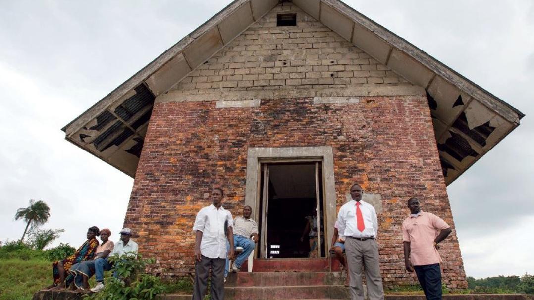 Local residents and Members stand outside the Magistrates Court in Clay Ashland, Montserrado County at its opening ceremony. Photo: Staton Winter | UNMIL | 20 Jul 07