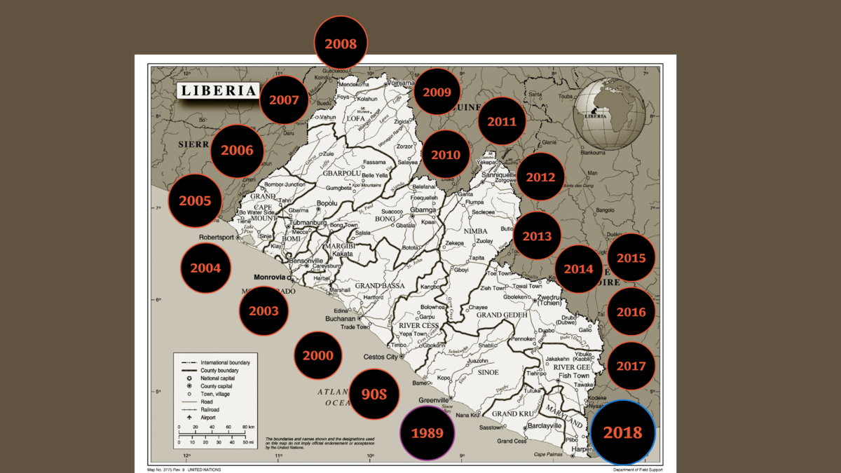 HomeHomePeacekeeping newsThe story of UNMIL [Book]: Timeline of the key events in Liberia - (1989-2018) The story of UNMIL [Book]: Timeline of the key events in Liberia - (1989-2018) 03 April 2018Timeline of the key events in Liberia - (1989-2018) - Screenshot of the video created by: Shpend Berbatovci | UNMIL | 22 MAR 18Share