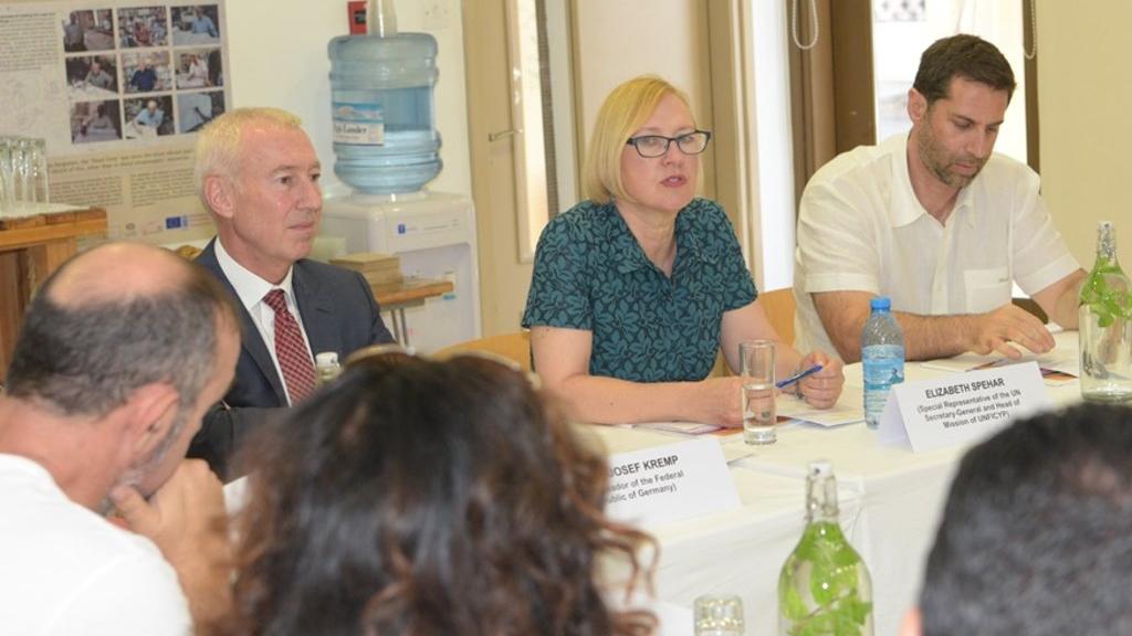 NICOSIA, 2 October 2017 - As part of efforts to support peace building and peace education in Cyprus, the Special Representative of the Secretary-General (SRSG) in Cyprus, Ms. Elizabeth Spehar, yesterday attended a stakeholders’ meeting on the IMAGINE Project, an initiative implemented by the Association for Historical Dialogue & Research (AHDR) and the Home For Cooperation.