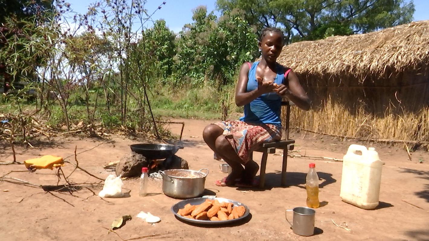 Angelina, a resident of Tombura, makes pancakes. She told a visiting UNMISS team that she earns only 1.5 dollars a day from this.