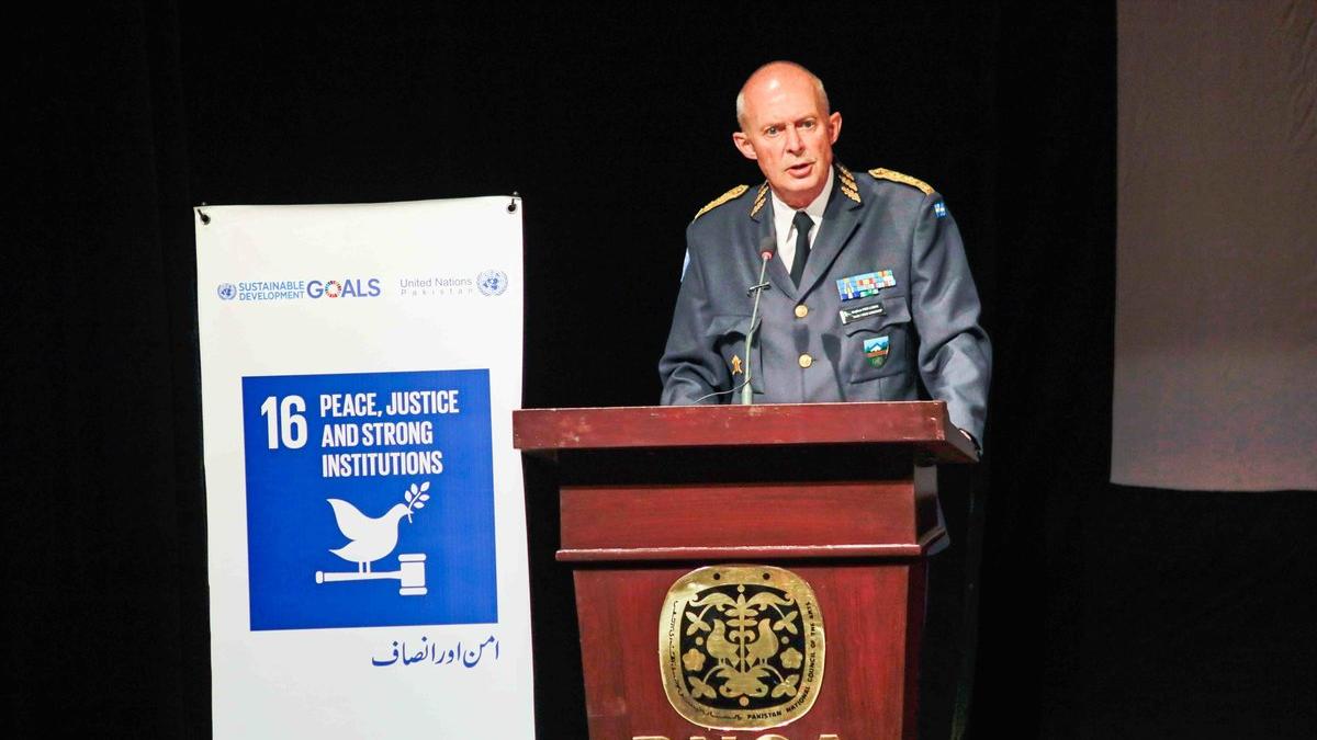 Major General Per Lodin, Head of Mission and Chief Military Observer (CMO), UN Military Observer Group in India and Pakistan’s (UNMOGIP’s) giving opening remarks at screening of documentary ‘A Journey of a Thousand Miles: Peacekeepers’