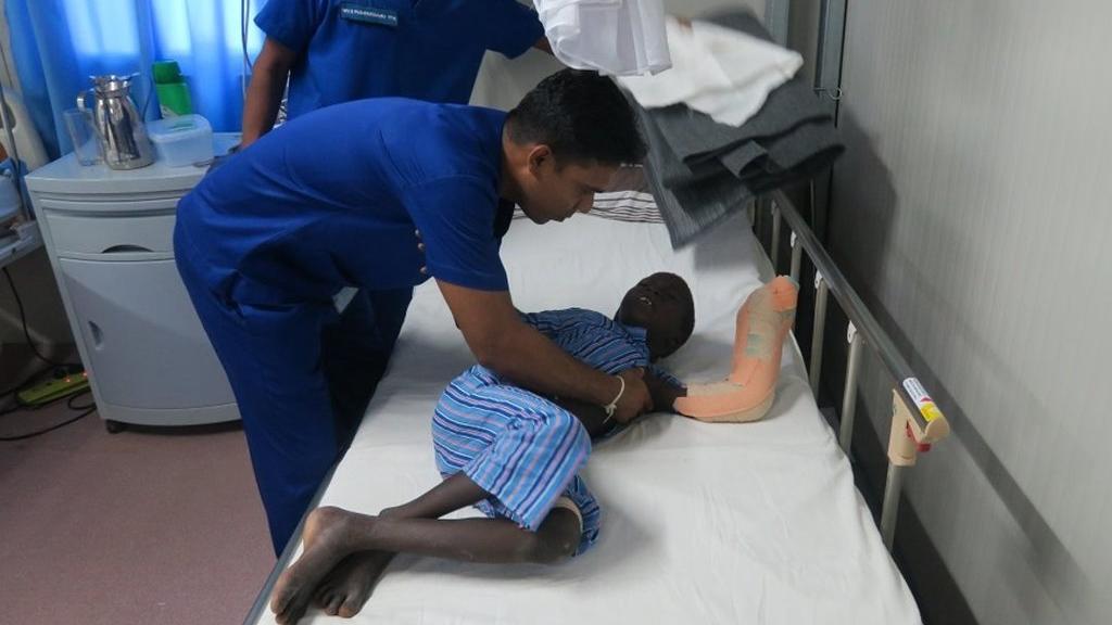 He was rushed to the peacekeeping mission’s hospital, where Sri Lankan medical staff performed immediate surgery that saved his arm from amputation.