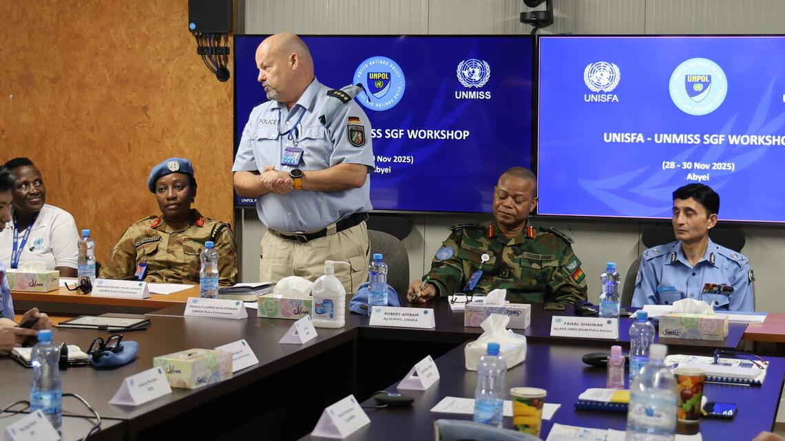 A major focus of the visit was the joint UNISFA-UNMISS SGF review workshop, hosted by UNISFA Police Commissioner Ms. Helmey Abraham and supported by UNMISS Police Commissioner Mr. Meinolf Schlotmann and his delegation. Developed through broad consultations between Member States and the Department of Peace Operations which is repeatedly endorsed by the UN Security Council and the Special Committee on Peacekeeping Operations, the SGF provides the unified doctrine that guides all aspects of UN police work. The workshop came at a particularly timely moment, as missions continue to operate under significant financial constraints, underscoring the importance of consistent guidance, efficient use of resources and strengthened interoperability across operations. Over three days, senior UNPOL leaders and mission stakeholders deepened their understanding of SGF principles, shared practical lessons learned and identified gaps that will inform the Police Division’s ongoing global review of policing guidance.