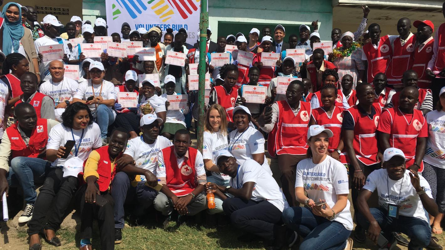 UN volunteers in South Sudan celebrate their day with school children and patients