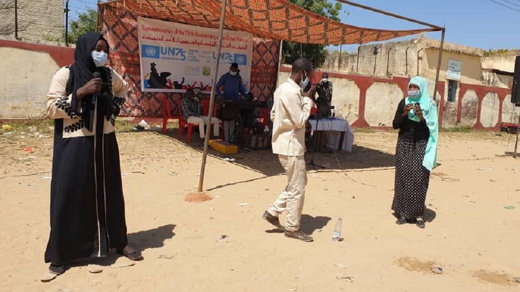 Hundreds of residents of El Fasher, north Darfur and Zalingei , central Darfur on 26 October joined the global community to mark the 75th Anniversary of the United Nations in colorful celebrations spiced with various social activities that included exhibition booths, Mission legacy photo exhibition, handicrafts market, drama performances on COVID-19, music concerts, peace songs and cultural shows on peace and security.