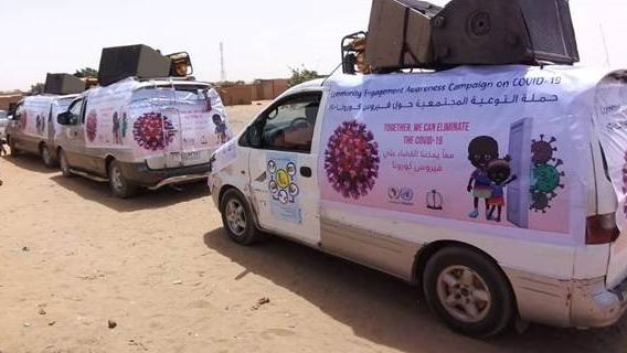 The awareness campaign, led by local health experts from the State Ministries of Health and Social Development, comprised the use of megaphones mounted on open vehicles and vans adorned with posters and banners with slogans on the measures to mitigate and fight against COVID-19, that has so far claimed more than four hundred lives by mid-June 2020.