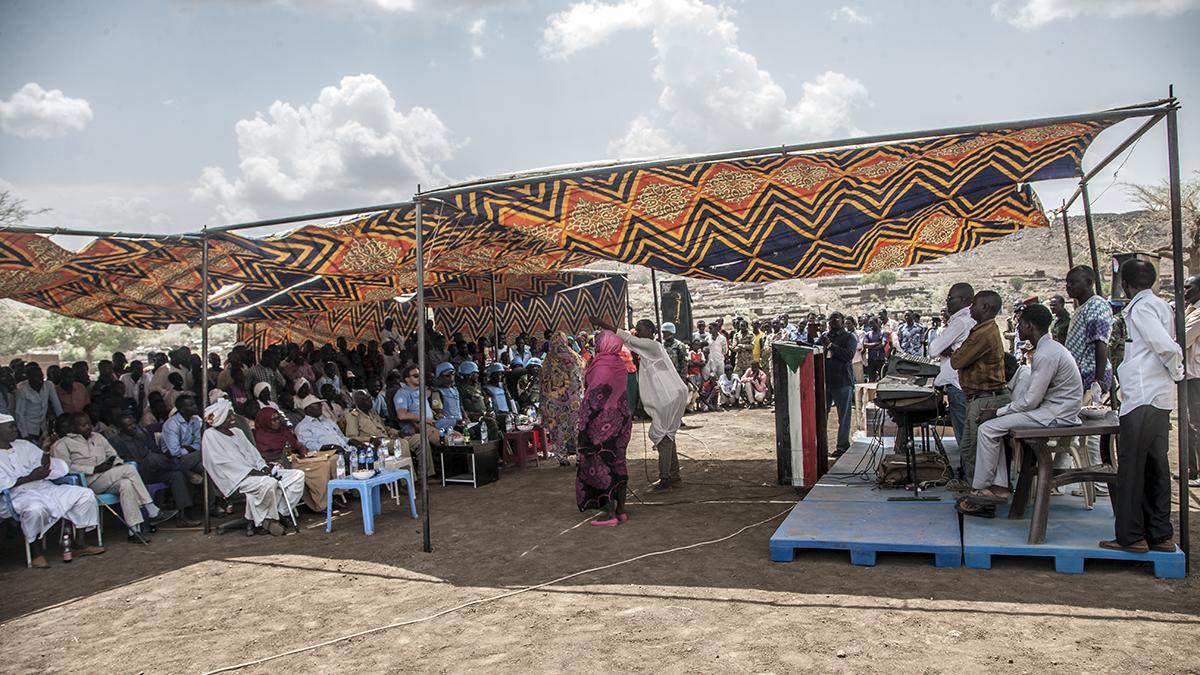 On 2 July, CPIS, in conjunction with the Women’s Union in Golo, central Jebel Marra Locality, conducted a one-day “Chant for Peace” Hakamat Workshop in Golo town. Forty-five Hakamat, (traditional praise women singers known for their warrior chants), drawn from different areas in Golo, including Arokero IDPs gathering site, attended the workshop which is part of the Mission’s community outreach activities, aimed at channeling peace messaging through the Hakamat’s repertoire to reinforce peaceful co-existence in the community.