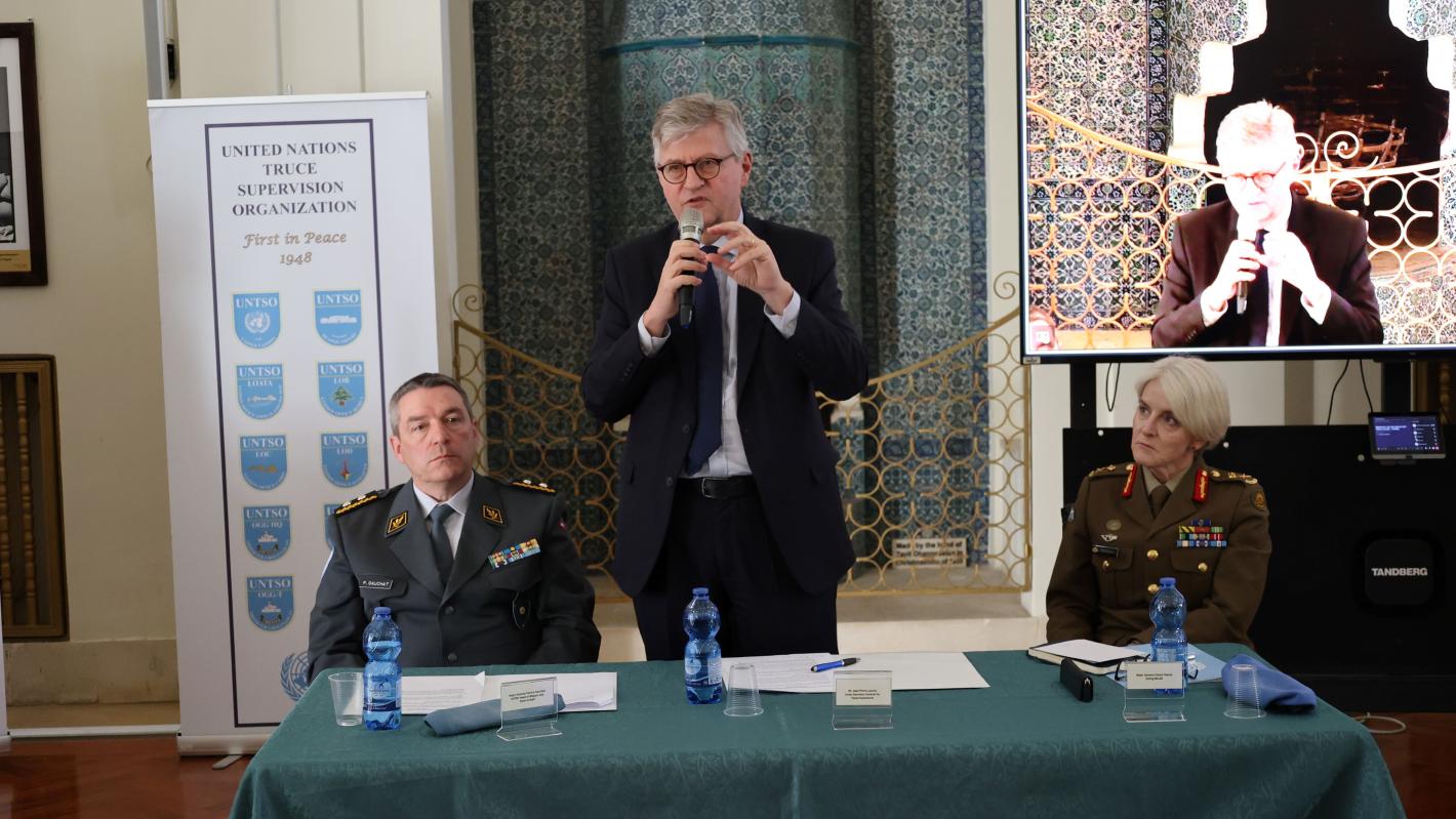 Jerusalem, January 2025 – United Nations Under-Secretary-General for Peace Operations, Jean-Pierre Lacroix, visited the United Nations Truce Supervision Organization (UNTSO) from 28 to 29 of January as part of his official visit to the Middle East. In Jerusalem, Mr. Lacroix met with senior Israeli Ministry of Foreign Affairs officials and IDF representatives. Moreover, he participated in briefings on UNTSO operations and a Mission townhall meeting where he appreciated the commitment of UNTSO personnel, addressed the challenges faced by peacekeepers in the field and the mission’s ongoing efforts to support regional de-escalation. Mr. Lacroix expressed his gratitude for the dedication and professionalism of UNTSO personnel, reaffirming the UN’s commitment to UNTSO's Mandate in these difficult times.