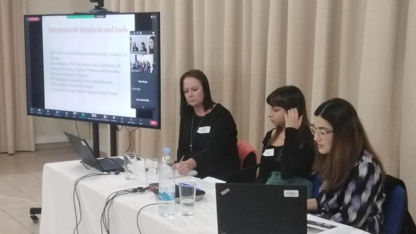 Dr. Christina Kaili, a PhD in Sociology with 15 years of experience promoting gender equality and women’s rights in Cyprus, across the Eastern Mediterranean and Europe, and Damla Kodan, an academic and a young researcher and member of Queer Cyprus, shared their perspectives on the problem of online and digital violence towards women, including women activists, and highlighted the possibilities ahead to mitigate this type of violence.