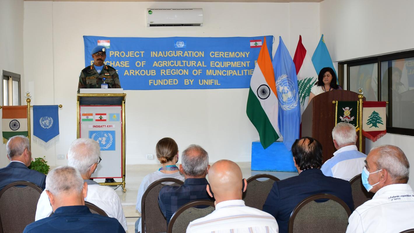 At a symbolic ceremony held on 3 September and attended by local mayors and officials, UNIFIL Indian Battalion Commander Colonel Mohver Singh Grewal handed over the equipment and tools to the head of Arkoub Union of Municipalities, Mohammad Saab. The beneficiaries hail from the areas under the responsibility of UNIFIL Indian peacekeepers.