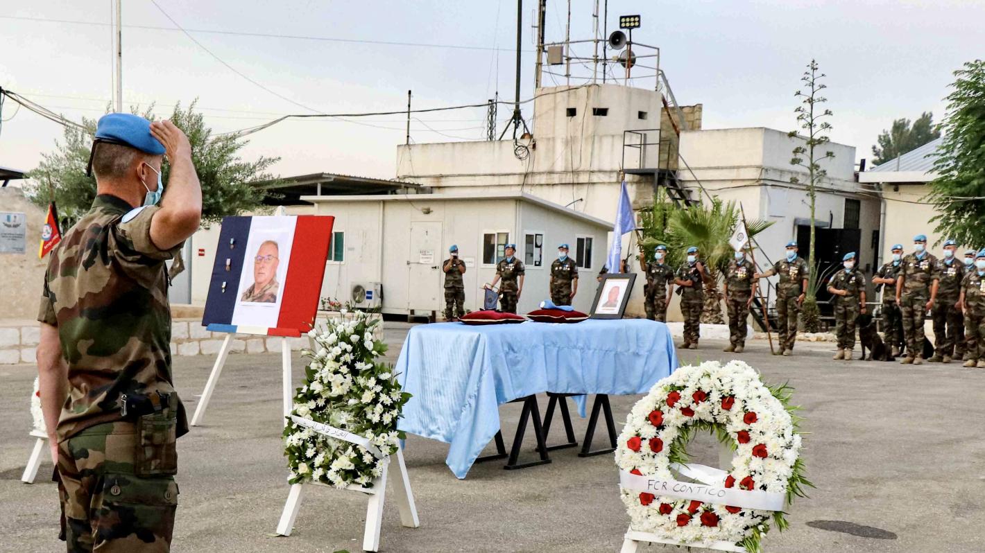 UNIFIL and the Lebanese Armed Forces (LAF) today paid tribute to a fallen French peacekeeper, who died on Saturday due to medical conditions, at a solemn ceremony held in a UNIFIL French base in Deir Kifa, south Lebanon.