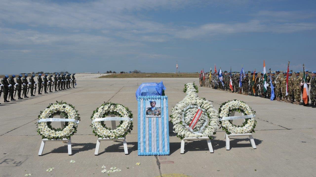 Senior UNIFIL officials, including Deputy Force Commander, Major General Shivaram Kharel, LAF Commander’s representative Brigadier General Hasan Haider and fellow UNIFIL peacekeepers assembled at the tarmac of the Rafic Hariri International Airport in Beirut to honour the peacekeeper.