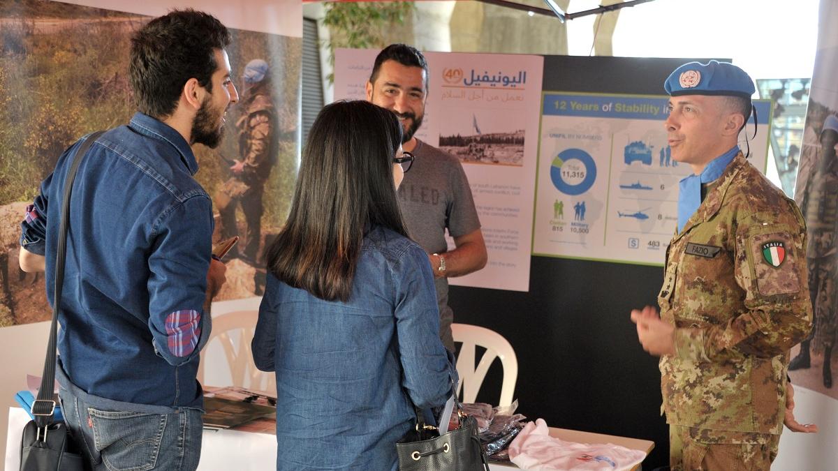 UNIFIL’s military and civilian peacekeepers joined various UN agencies in Lebanon in an NGO fair in Beirut earlier this week to speak with Lebanese youth about the work of UN Peacekeeping in south Lebanon in furthering peace. The 23-24 April NGO Fair was organized, under the patronage of the Lebanese Minister of Social Affairs, Pierre Bou Assi, in the campuses of the American University of Beirut (AUB) and Université Saint Joseph (USJ). The UN’s participation in the Fair was to promote a better understanding, among a wide spectrum of the Lebanese population, of the activities carried out by a large number of UN entities in Lebanon. In her tweet after the opening ceremony on 23 April, the Acting UN Special Coordinator for Lebanon, Pernille Dahler Kardel, said she was pleased to have participated in the civic engagement forum that offered space for young people to engage with local and international NGOs and on ways they can make a difference in Lebanon. “A highlight of my presence in Lebanon has been to meet the outstanding young men and women of this country,” she tweeted. -------------------------------------------------------------------------------------------------------Article: Tilak PokharelVideo camera: Mohamad HamzeVideo editor: Suzane BadereddineGraphics: Zeina EzzeddineTranslation: Adib Al-MoussaStills: Suzane Badereddine-------------------------------------------------------------------------------------------------------