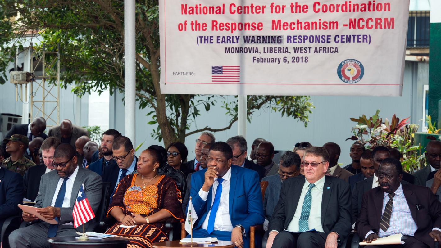 The launch of the National Center for the Coordination of the Response Mechanism (NCCRM) in Liberia ceremony on Tuesday, 6 February 2018 was attended by the Vice President of Liberia, Mrs. Jewel Howard Taylor, Mr. Marcel A. De Souza, President of ECOWAS Commission, Senior UNMIL leadership, Members of the ECOWAS Parliament at the Liberian Legislature, Senior Government Officials, the Diplomatic Corps among others.