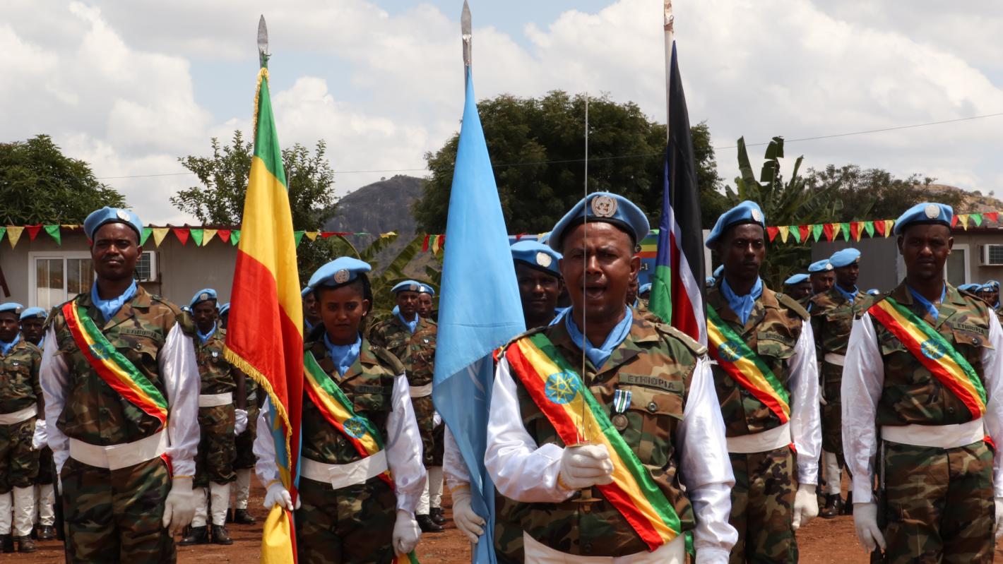 Standing in formation under the sweltering sun, hundreds of Ethiopian peacekeepers serving in the United Nations Mission in South Sudan received the UN medal in honor of their service for peace in the country.