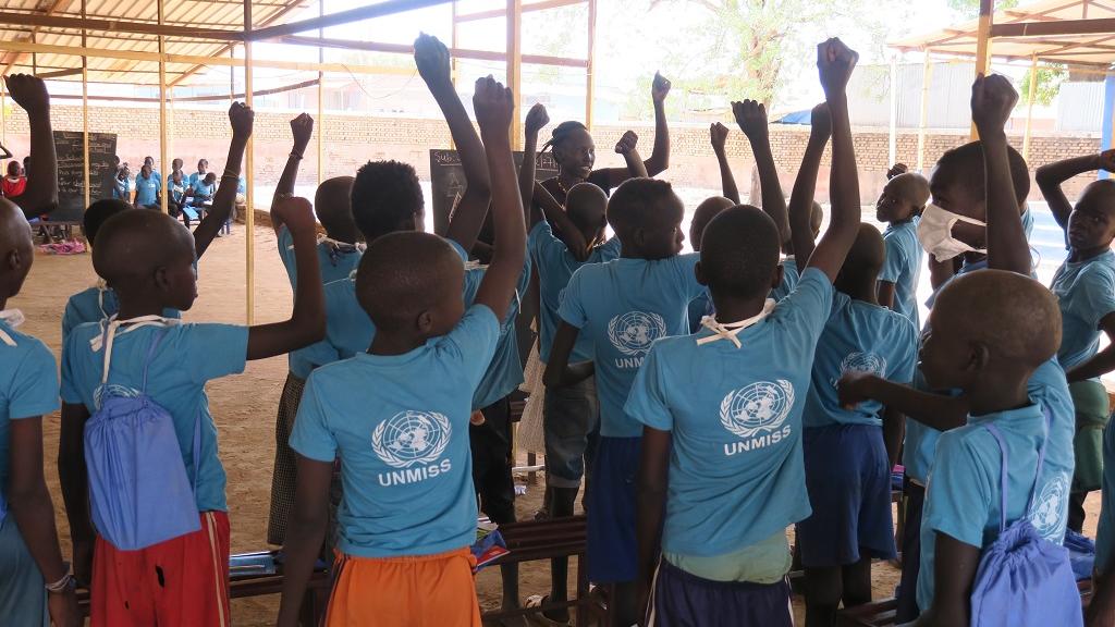 The mentoring of the children was conducted by twenty youth volunteers, who in turned had been trained by the peacekeeping mission.