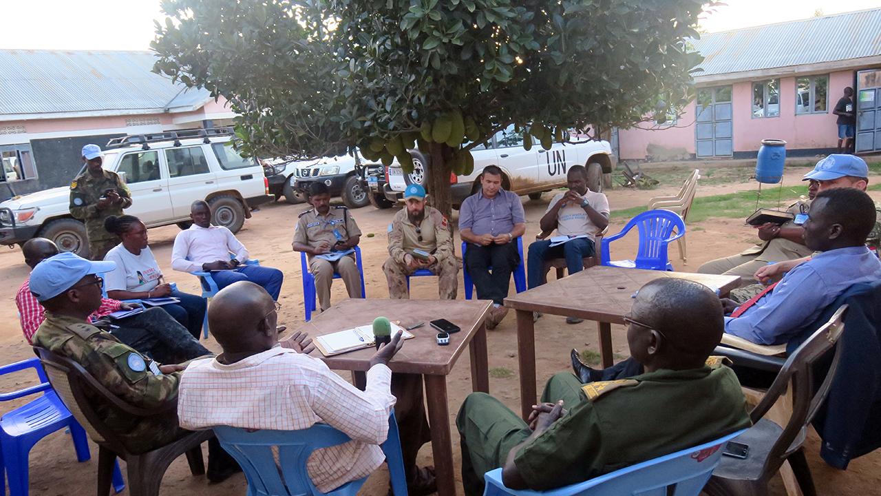 “Civilians in this area are respecting what we agreed on and are no longer moving around with guns and military uniforms,” Gerald Okeny, chief of the Agoro district in Magwi assures the visiting team from the peacekeeping mission.