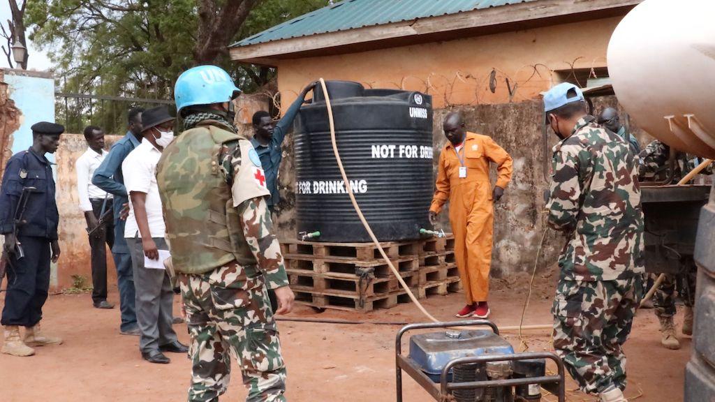 The peacekeeping mission is placing the water tanks in the most strategic venues imaginable, including the police station, the army barracks and the Rumbek central market. On average, the police station receives more than 400 visitors per day, including prisoners, their relatives and law enforcement officers.